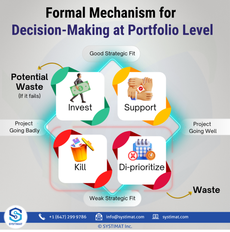 Another problem in Portfolio Management is often the lack of formal and agreed methods of analyzing and approving/rejecting new or existing Programs/Projects. The decisions are often made more subjectively instead of having a comprehensive mechanism to make the portfolio decisions objectively and analytically (Can you recall any Pet Project(s) your CEO or Business Unit head loved to continue?) 😏. Such a situation is bound to create more confusion, disagreement, and, potentially, more conflict within the organization, which will inevitably affect the execution of the Strategy.