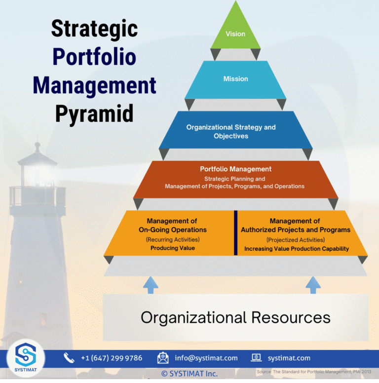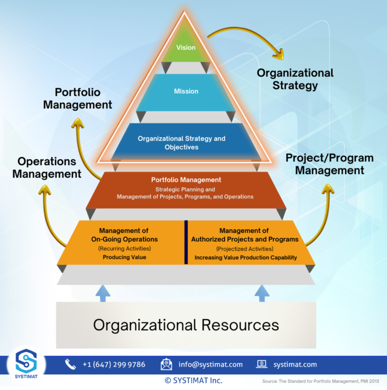 Without going into the nitty gritty of Strategy Management, which we can discuss in another article, let us understand the basics through a simple Strategic Portfolio Management pyramid by PMI, USA.